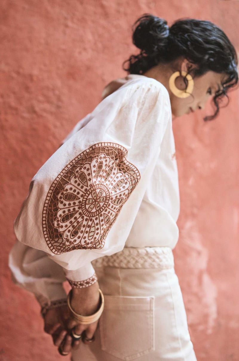 Blouse brodée à manches longues en coton DESTINY